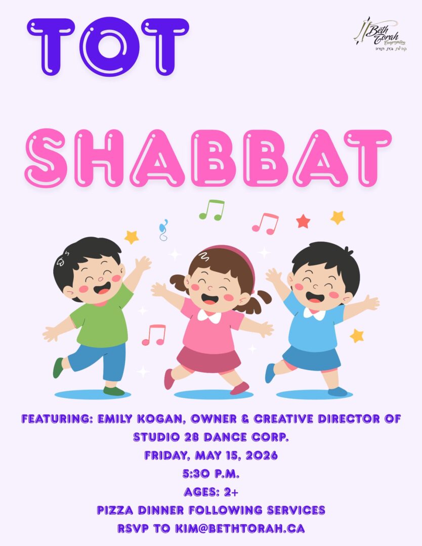 Join Cantor Steve, Rav Jen, and special guest, Emily Kogan - owner and Creative Director of Studio 28 Dance Corp. in Toronto, for a joyful song-and-dance-filled welcome to Shabbat! Designed for children ages 2–5 (and their siblings, parents, and grandparents, too), this lively experience brings the spirit of Shabbat to life through movement, music, and connection. Emily's […]